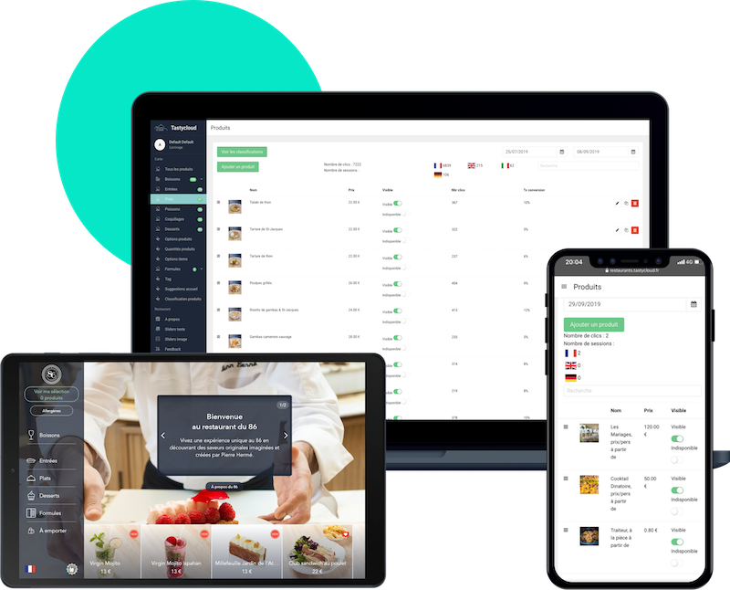 Du menu sur tablette, à votre site internet, en passant par les caisses partenaires, votre menu est systématiquement à jour grâce à notre éco-système intégré.